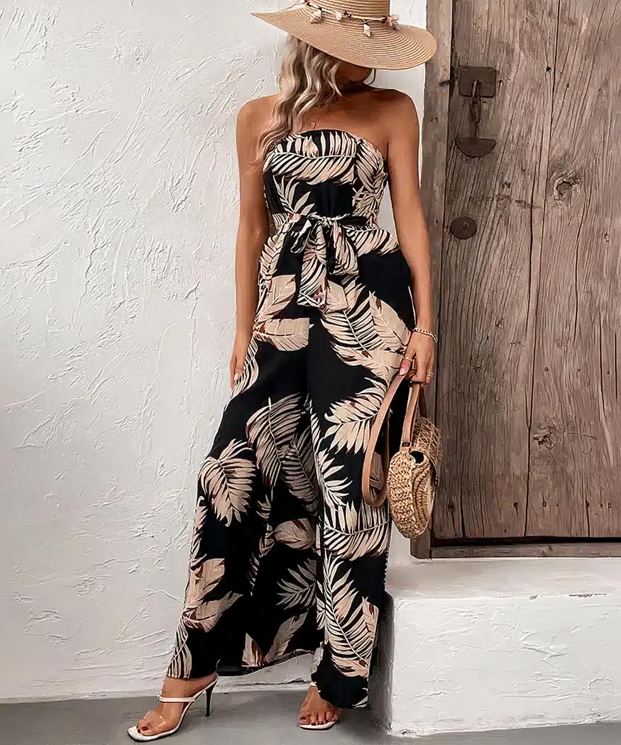 Combinaison pantalon bustier à imprimé floral pour femme