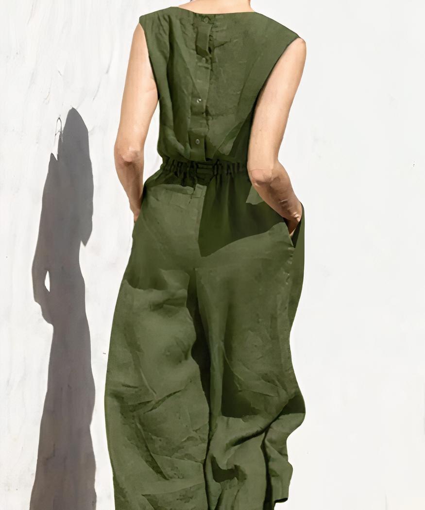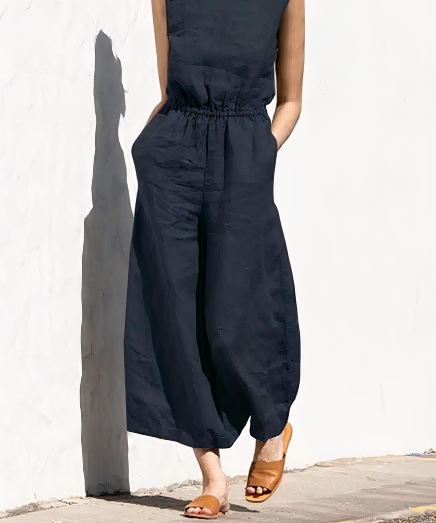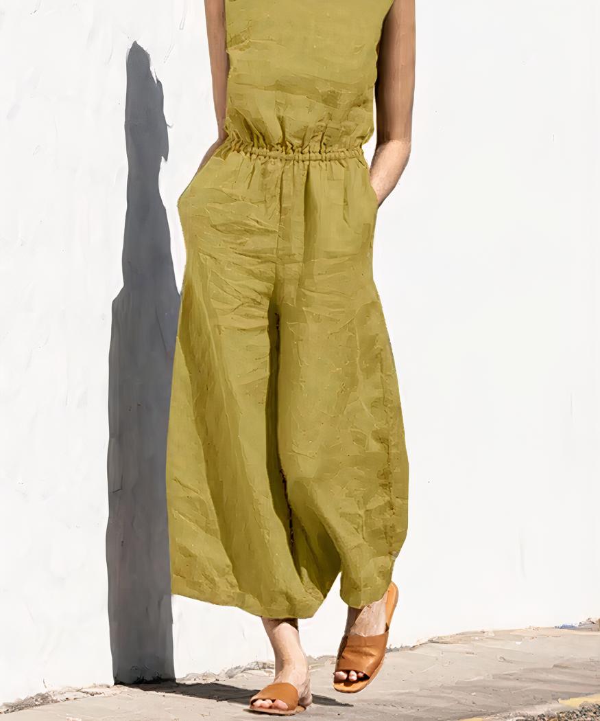 Cette combinaison ample en lin pour femme est ornée d’un ourlet à la taille qui met votre silhouette en valeur. Elle est conçue dans un mélange de lin et de coton : le tissu est résistant, mais doux au toucher. Les jambes sont amples et longues, ce qui donne un look sophistiqué sans effort. Cette combinaison est disponible en une variété de couleurs naturelles pour s’adapter facilement à votre look.