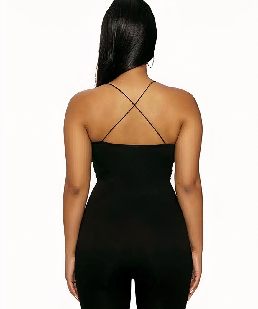 Cette combinaison noire à fines bretelles pour les femmes est le produit pour vous si vous cherchez à mettre en avant votre élégance et votre personnalité. Elle se compose d’une matière lisse et soyeuse qui s’ajuste parfaitement à votre silhouette et la rend incroyablement flatteuse. Les fines bretelles soulignent le décolleté, créant un look féminin accrocheur. Quelle que soit votre destination finale, cette combinaison assurera toujours que vous rayonniez d’aplomb et de style.