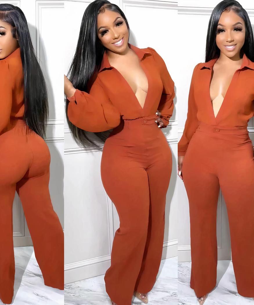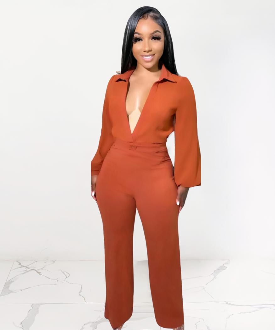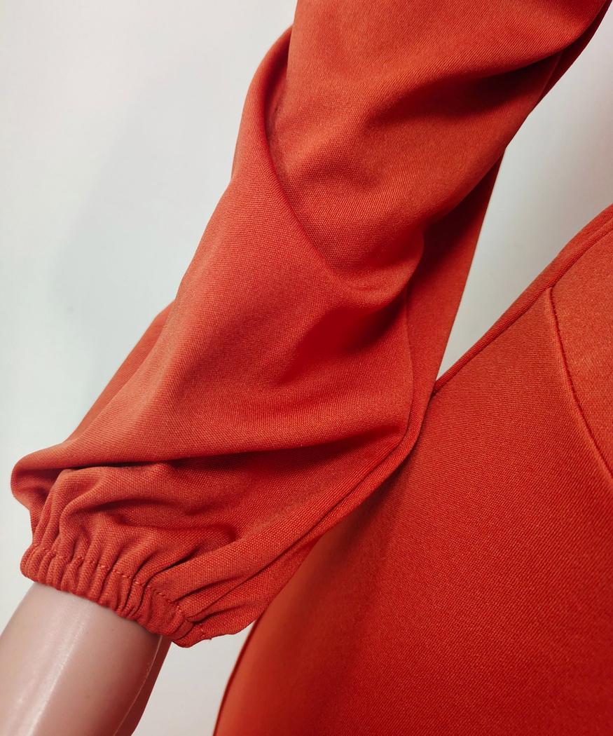 Cette combinaison orange à col en V pour femme est parfaite pour être à la mode et au top de votre look. Elle vous offre un look unique et plus important encore, elle est confortable. La combinaison possède également un décolleté profond très flatteur qui s’accordent parfaitement avec la couleur orange intense.