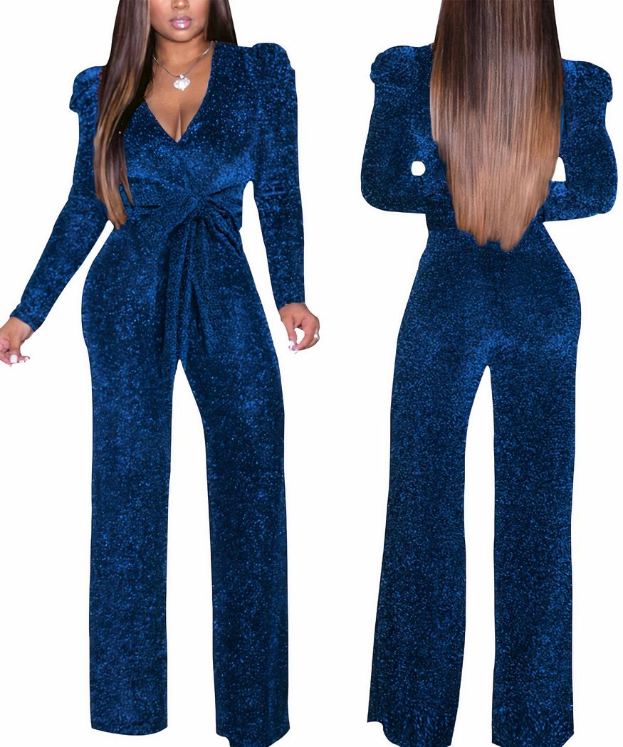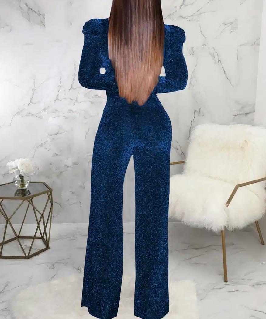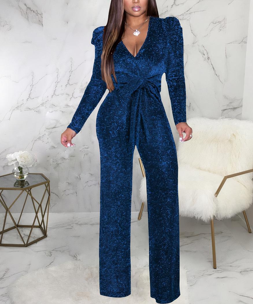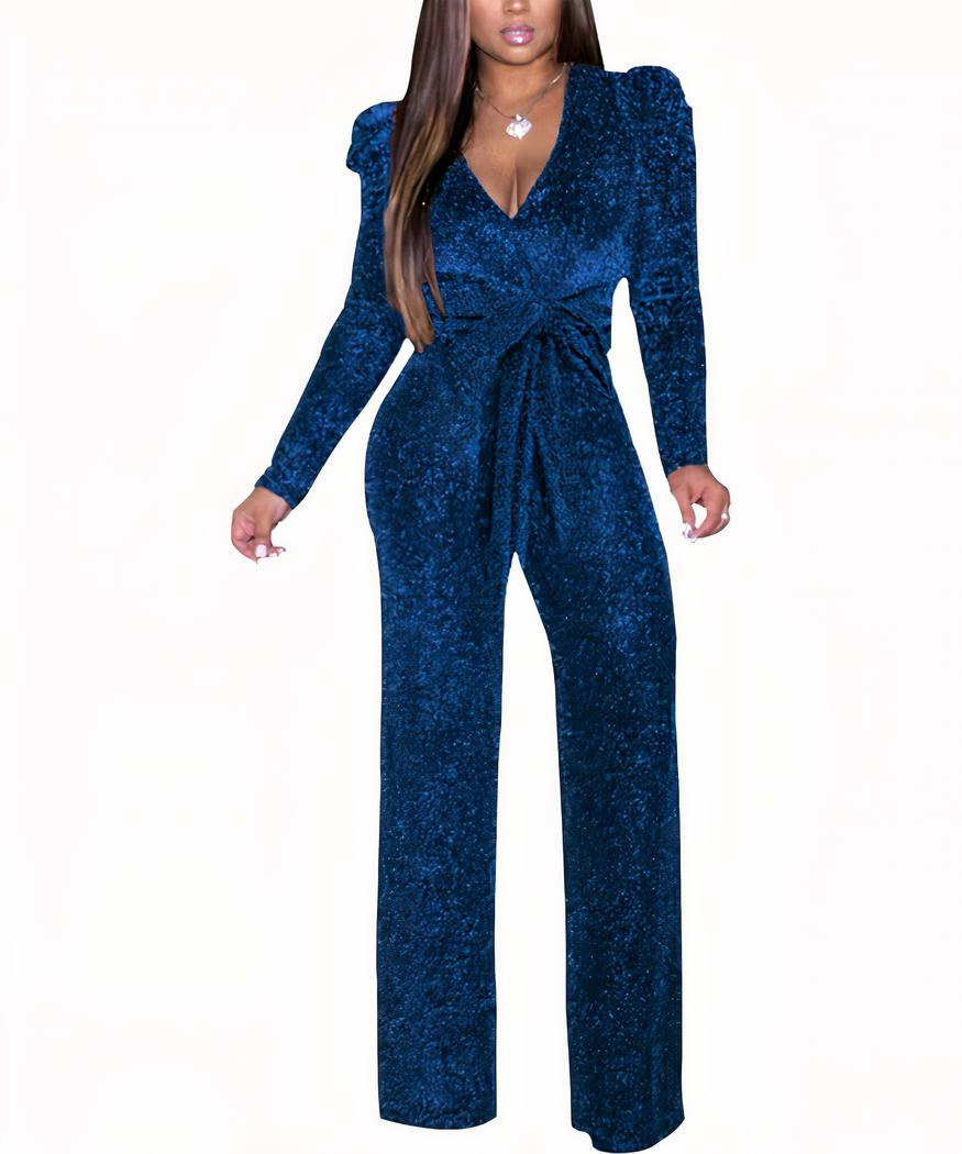 Combinaison de soirée à sequins bleus pour femme
